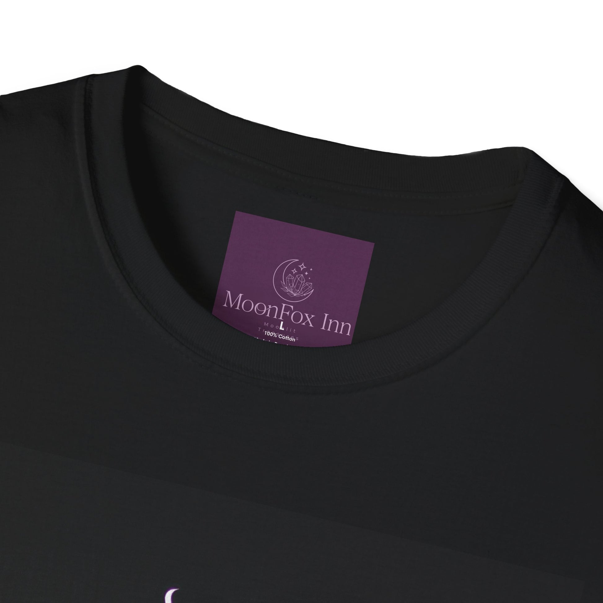 On the back, the Moonfox Inn’s iconic fox crest shines in cosmic purples and blues, paired with the words “Whimsical Wares & Moonlit Charms – Established in Moonlight, 2024.”